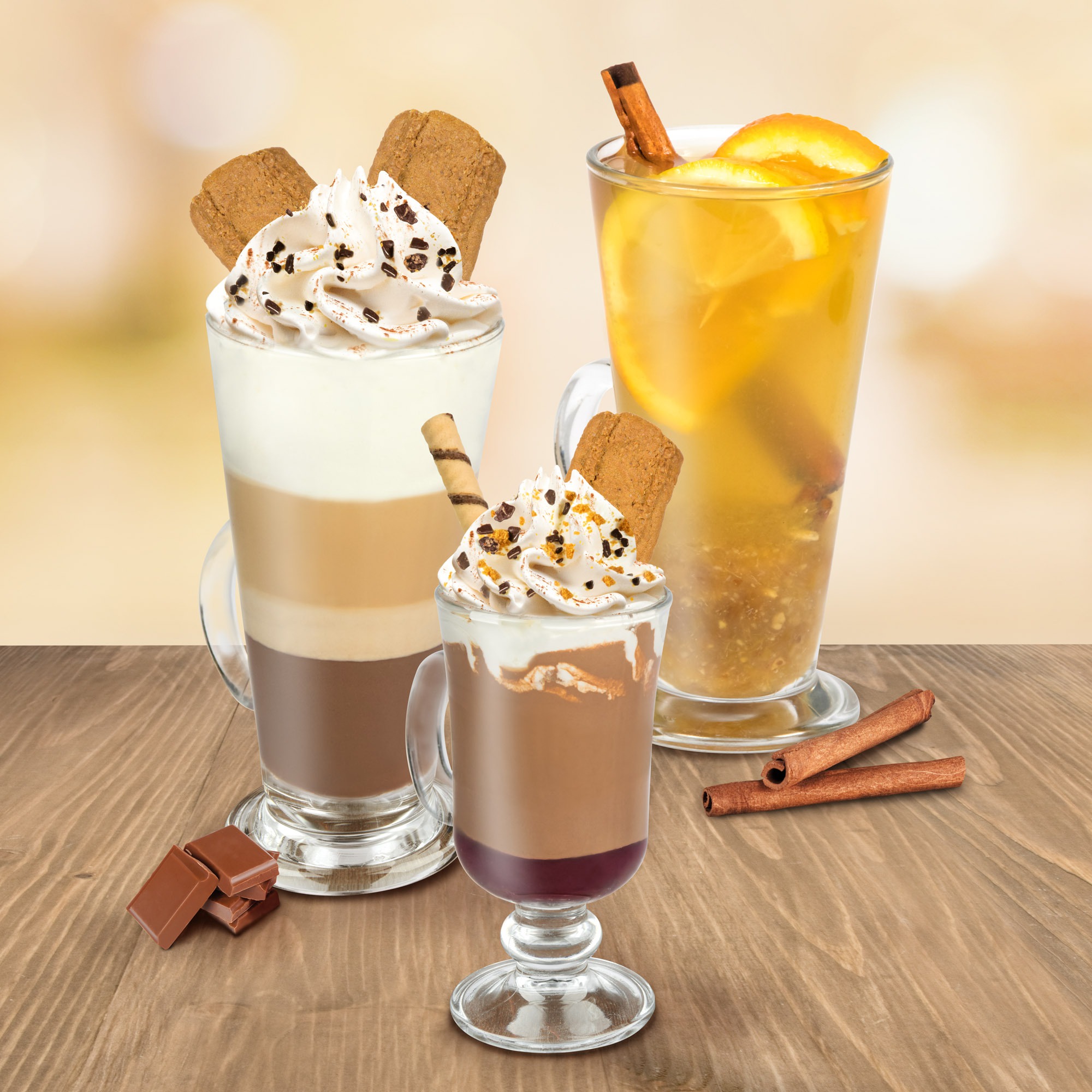 Dla kawoszy również przygotowaliśmy coś specjalnego. Tej jesienni w kawiarniach Mount Blanc możecie skosztować cynamonowej Mokki na bazie prawdziwej belgijskiej czekolady. W połączeniu z bitą śmietaną, chrupiącym ciasteczkiem korzennym oraz słodką posypką tworzą zestaw idealny.