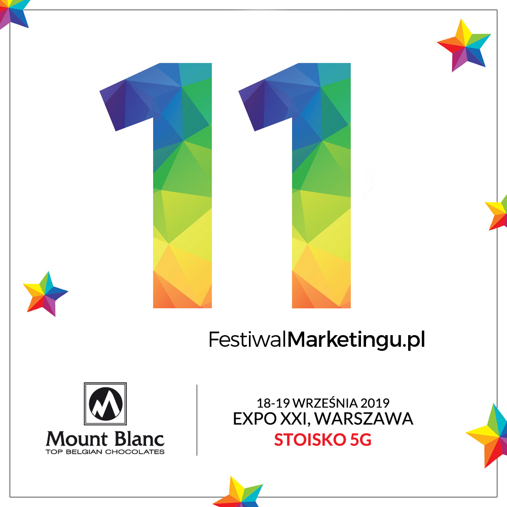 Zapraszamy serdecznie do odwiedzenia naszego stoiska (G5) na Festiwalu Marketingu, który odbędzie się w dniach 18-19 września 2019 w EXPO XXI Warszawa. W trakcie tych targów reklamy zaprezentujemy nasz najnowszy katalog. W nim wiele czekoladowych zestawów prezentowych oraz wyjątkowe upominki personalizowane dla firm. Odwiedzający nasze stoisko będą mieli również okazję skosztować wybornych belgijskich pralin Mount Blanc, a co najważniejsze „na żywo” obejrzeć przykłady naszych autorskich zestawów prezentowych.