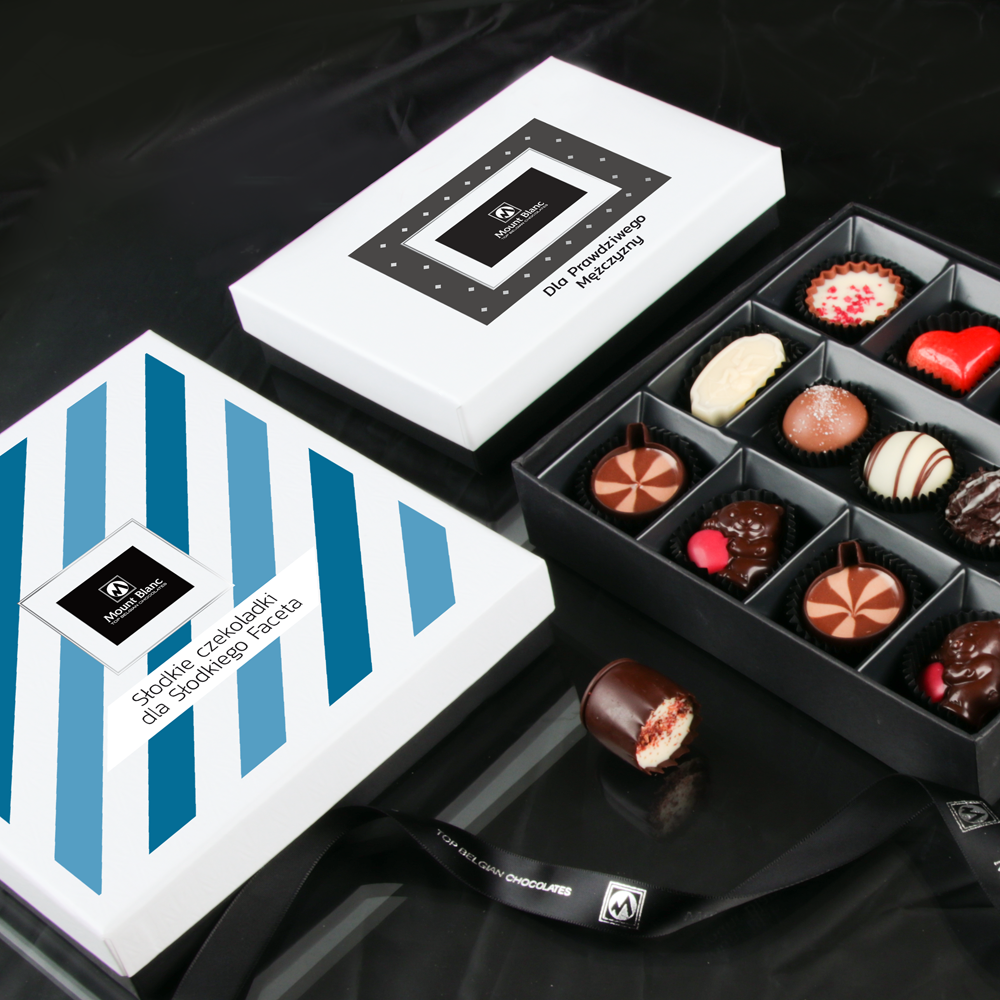 Już zaraz po Dniu Kobiet, 10 marca, obchodzimy Dzień Mężczyzn. To niepowtarzalna okazja, by podarować wyjątkowej osobie słodki upominek. W związku z tym zespół Mount Blanc zaprojektował kolekcję bombonierek, która trafi w gust każdego Pana. Stonowane wzory w odcieniach szarości, błękitu, granatu i brązu to kolory przewodnie dominujące w naszych nowościach. Dodatkowym atutem są nadrukowane na wieczkach dedykacje. W środku jak zawsze zestaw starannie dobranych belgijskich pralinek, którym ciężko się oprzeć.