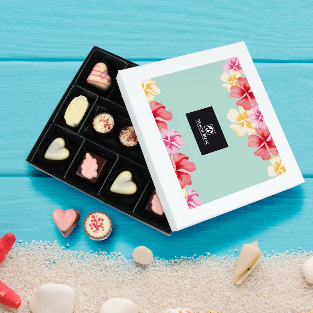 Nowa kolekcja wakacyjna to mix dobrze znanych Wam czekoladowych upominków, w letniej, pastelowej odsłonie. Sweet Holidays to niepowtarzalne zestawy pralin, które sprawdzą się świetnie jako prezenty na każdą okazję. Te uniwersalne wzory będą idealne zarówno na imieniny, urodziny, podziękowania jak i zwykły prezent od serca dla bliskiej osoby. Ich pastelowe barwy przypadną do gustu każdej kobiecie, a słodkie wnętrze oczaruje każde podniebienie.