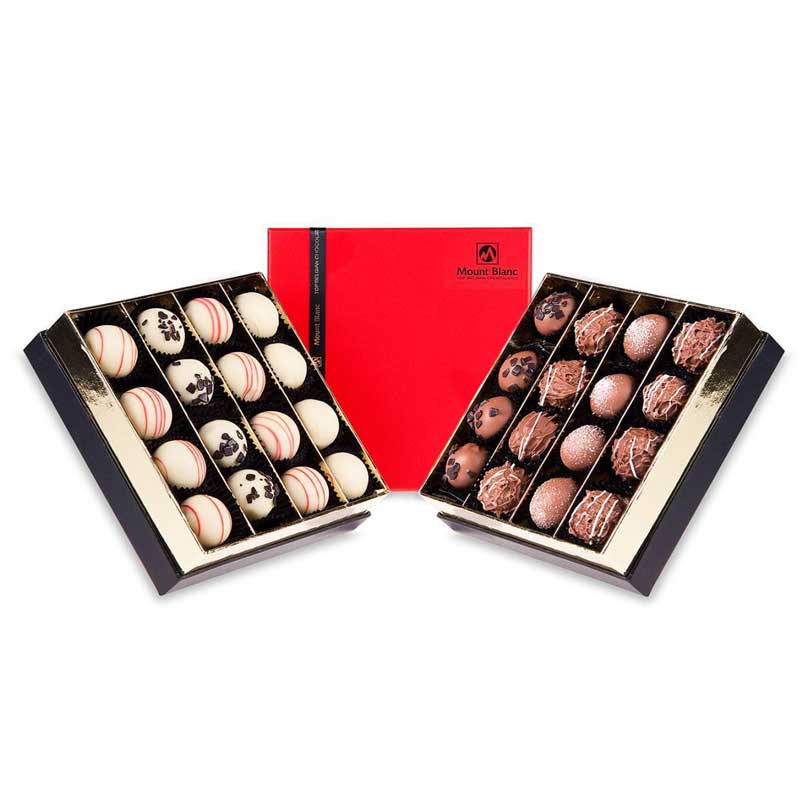 Druga kolekcja wyjątkowych czekoladek z okazji dnia matki, to z całą stanowczością kolekcja Diamond. Już na pierwszy rzut oka sama nazwa tej serii kojarzy się z wyjątkowym klejnotem jakim jest diament. I tak też jest w rzeczywistości. Bombonierka kształtem przypomina ten właśnie wyjątkowy kamień. A w jej wnętrzu znajdziemy szereg czekoladowych pyszności. Seria ta została stworzona w kilku wersjach smakowych i kolorystycznych. Znajdziemy to bombonierki Diamond skrywające czekoladki oblane tylko deserową czekoladą, ale i taką wersję, która zawiera czekoladki zarówno w mlecznej, białej, jak i deserowej czekoladzie.